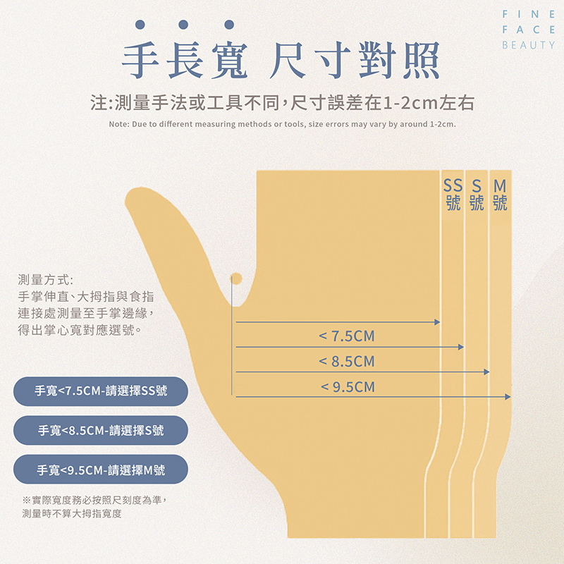 2.穿戴過程前、中如有發現手套有破損之情形,請立即停止使用