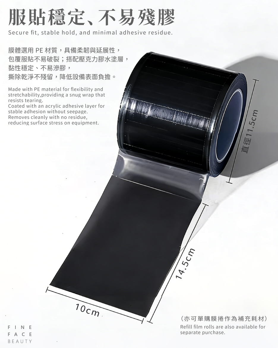 ☑ 黑色隔離膜視覺沉穩、不顯髒,撕除時不易殘膠。