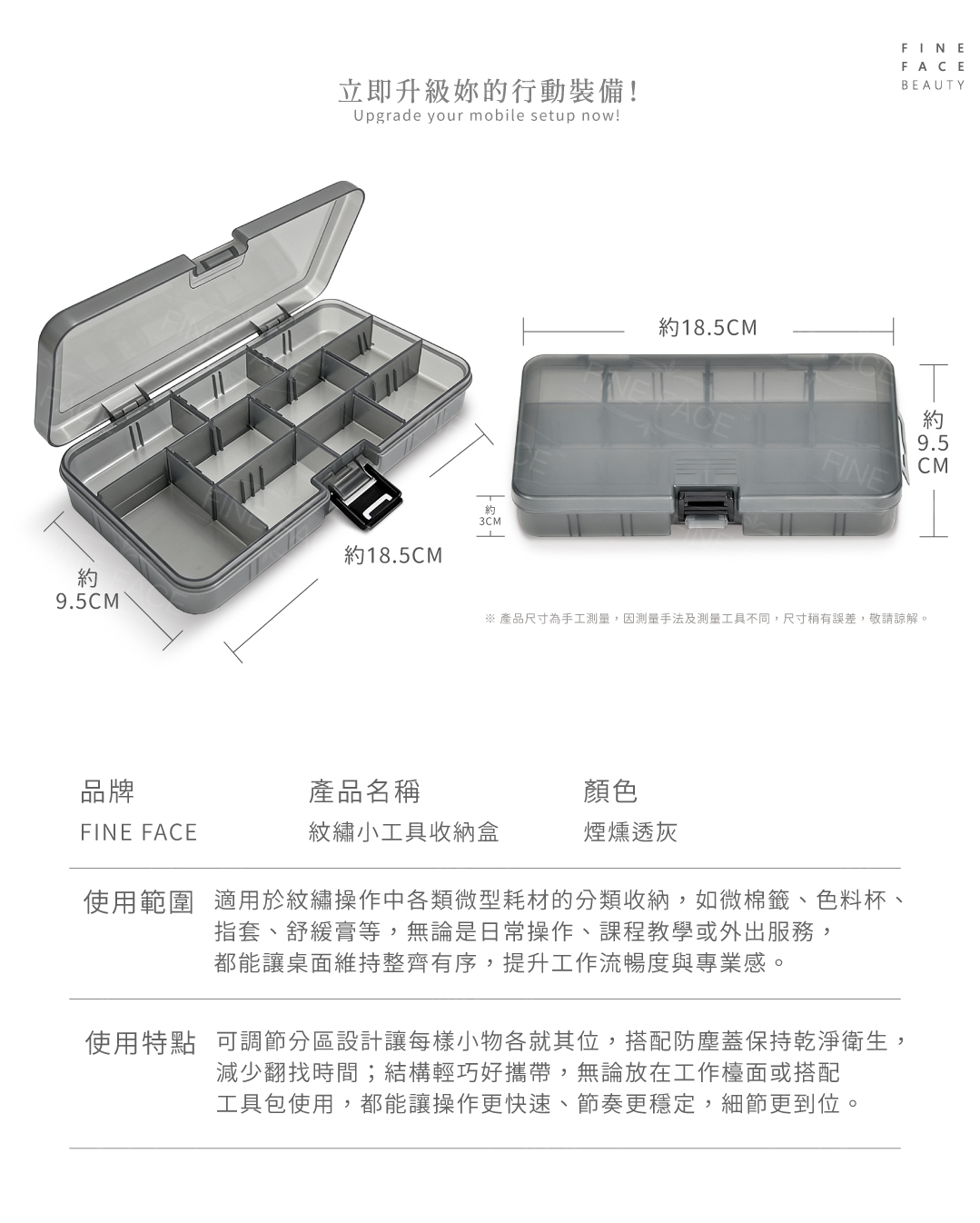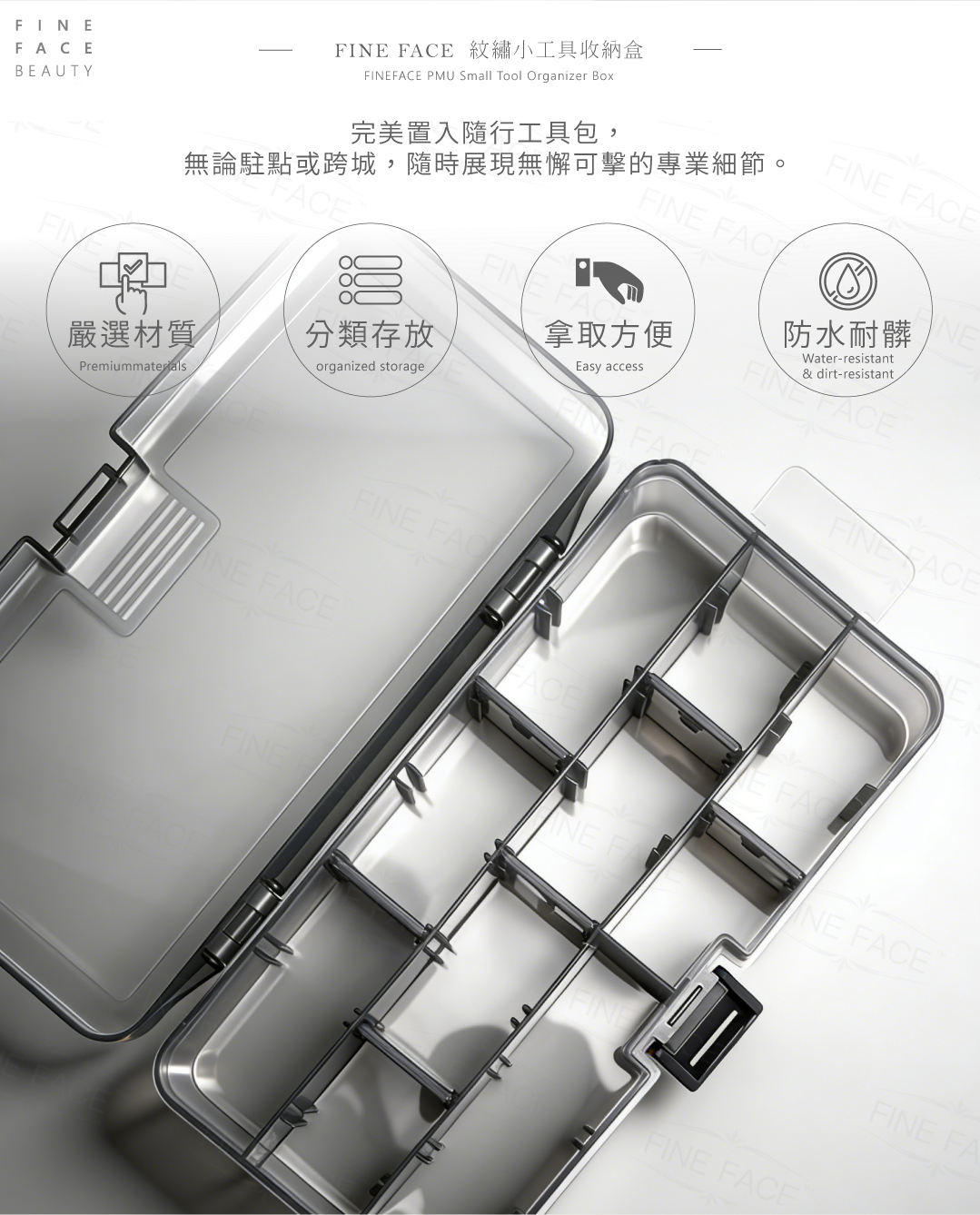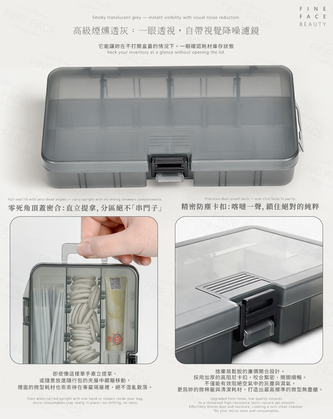 ☑ 靈活拆卸隔板,精準安放微棉籤與色料杯。