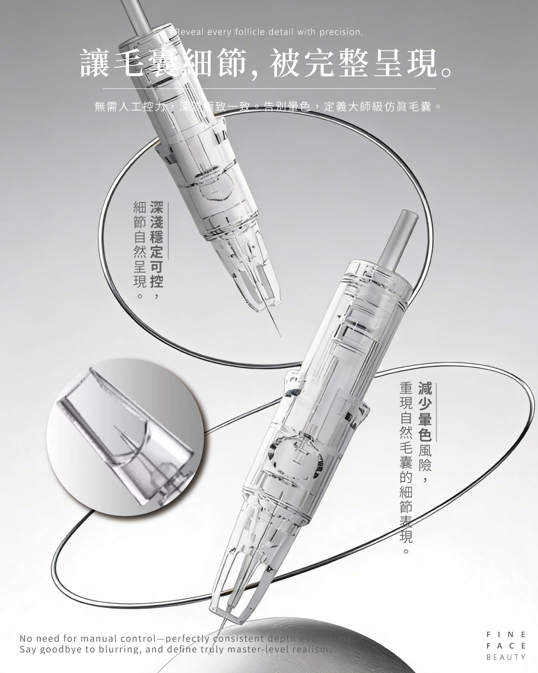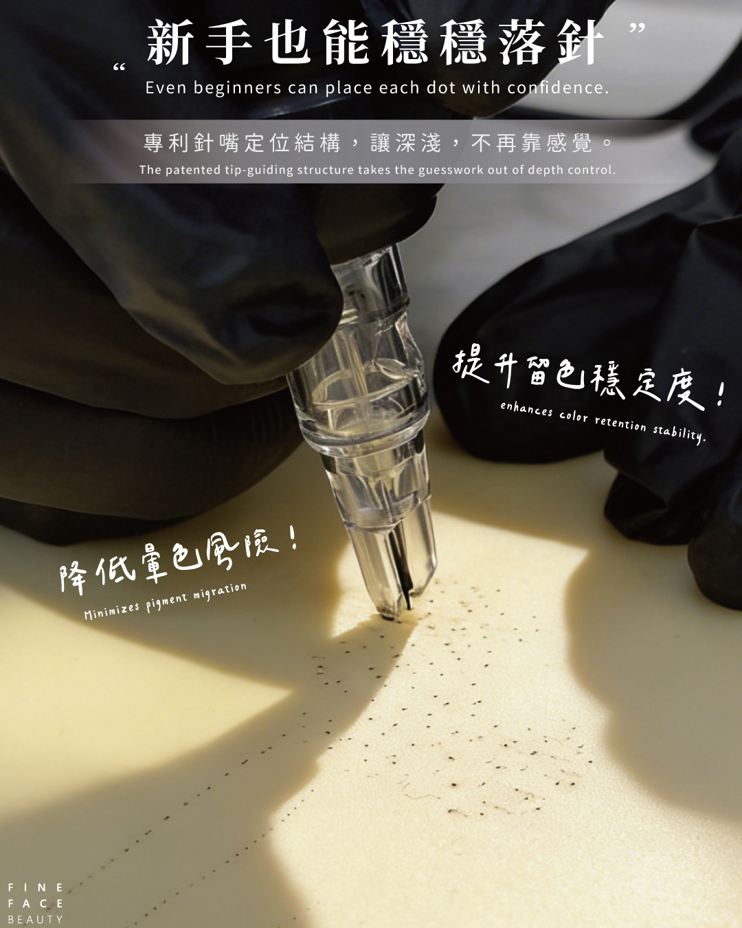 ● 點狀清晰不擴散,入針深度正確毛囊感更自然,提升視覺濃密度。