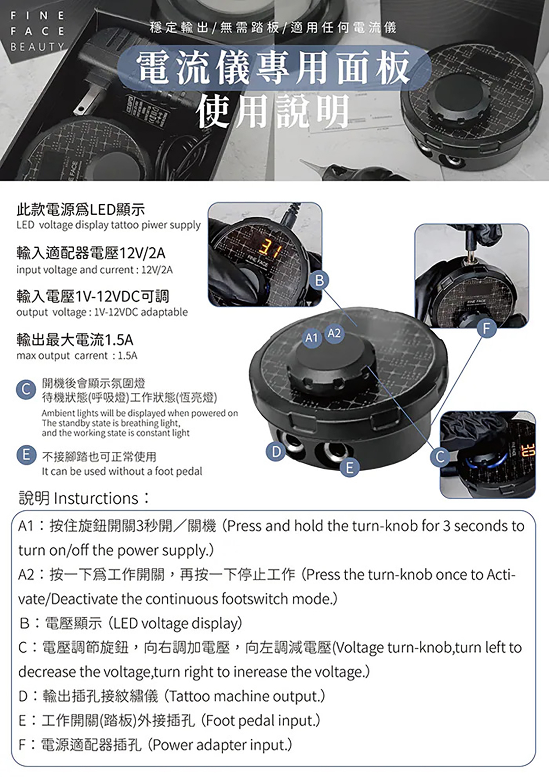 套組內含: FineFace 全能機用筆身 ×1、基礎控制面板 ×1、電源線 ×1