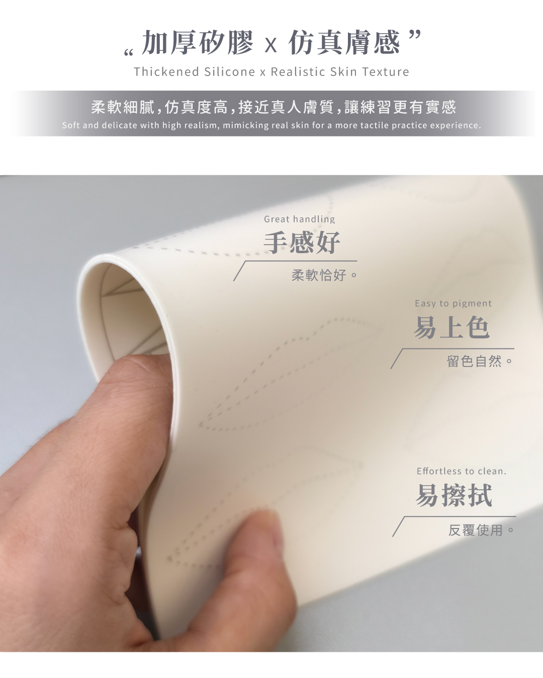 ☑ 仿唇膚真皮可任意折翻 練習中不失真