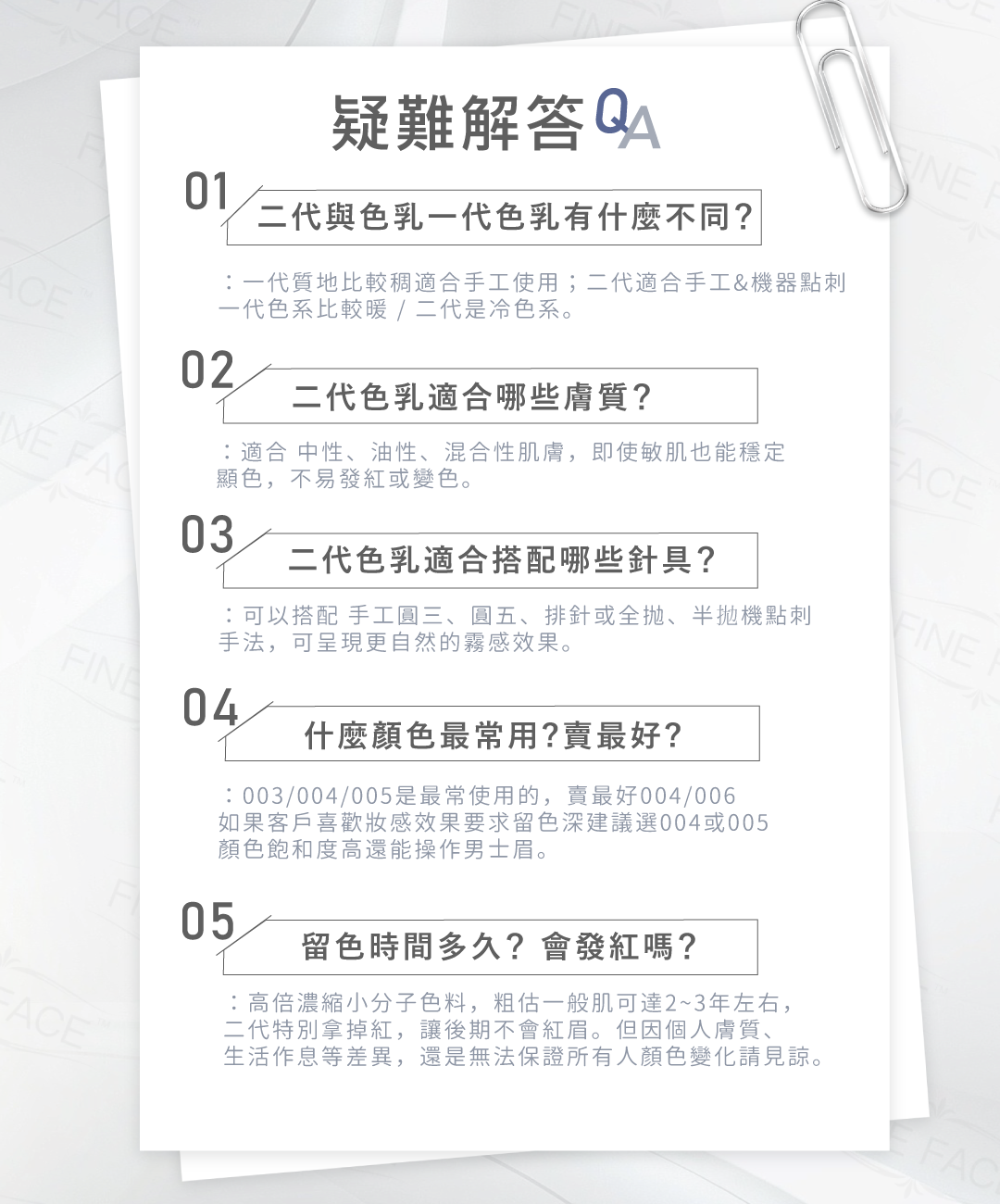 ☑二代色乳(乳狀色料),適合手工技法與機器點刺手法,無需額外調整