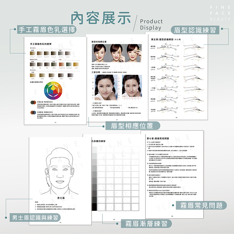 ☑內含 眉型練習 / 女士眉 / 男士眉 /各種臉型認識與練習 /漸層練習 / 術後護理與照顧