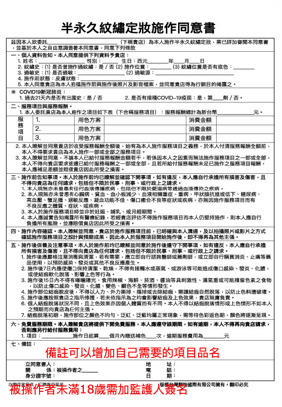 ☑白紙黑字清楚記錄色號 / 操作日期 / 術後提醒