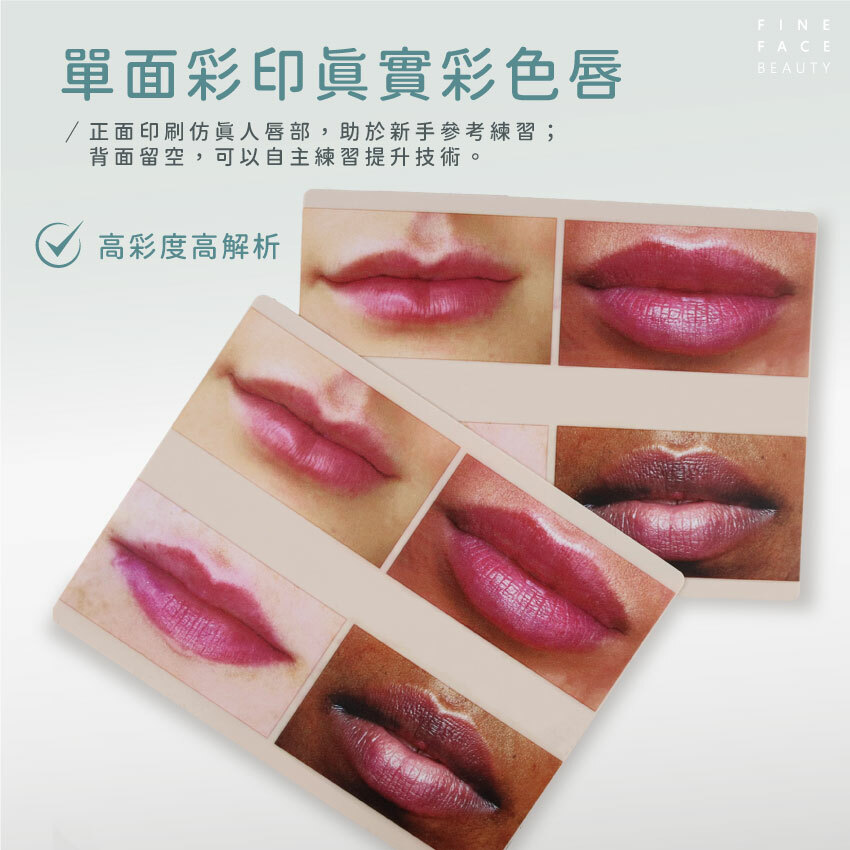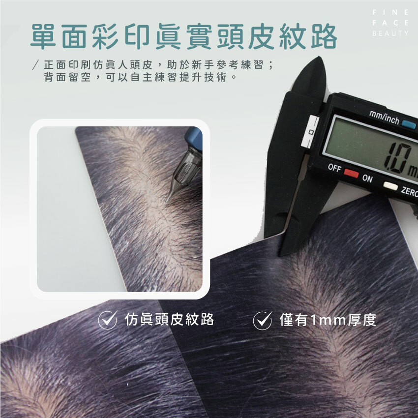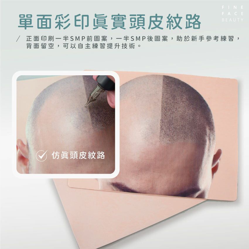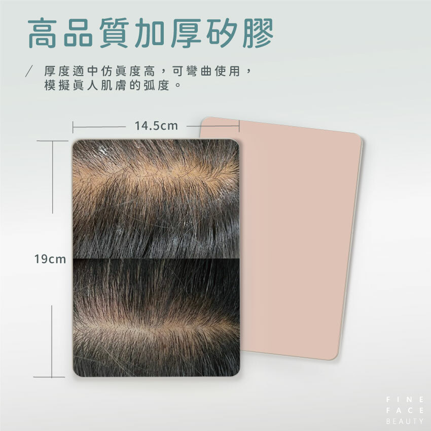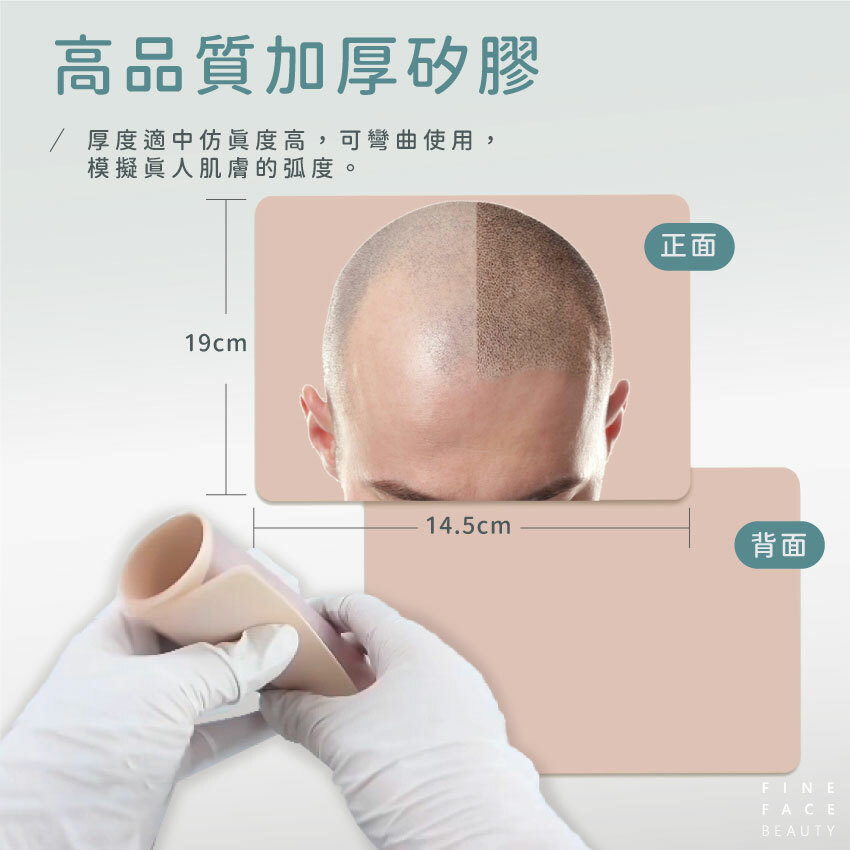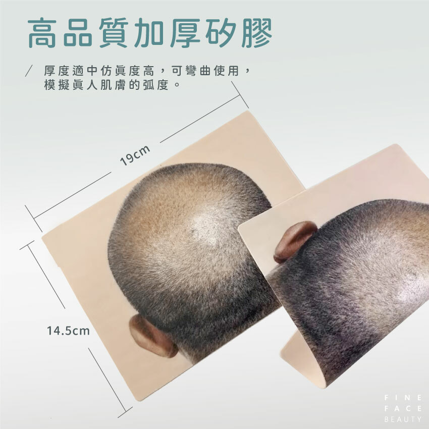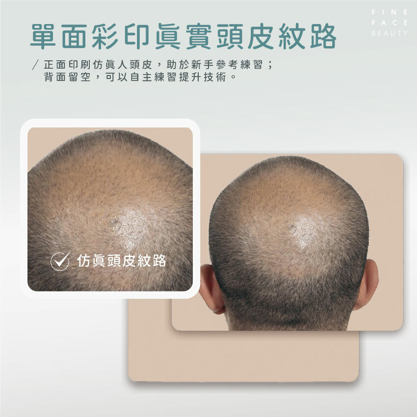 分別有5種款式:①男性禿頭頭型練習假皮、②男性後禿頭型練習假皮、③女性髮際線練習假皮、④女性禿頭練習假皮、⑤彩唇練習假皮